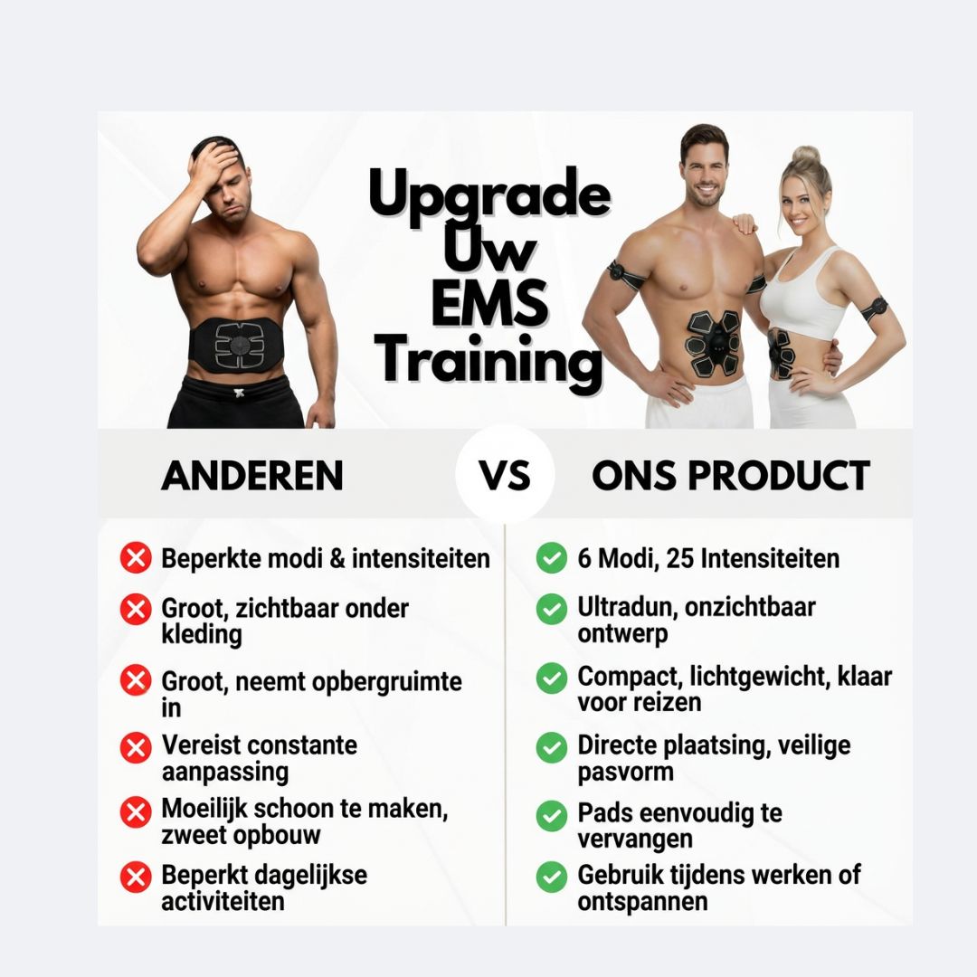 ➤ EMS (Elektro Musculaire Stimulatie) traint via elektrische impulsen die je spieren direct activeren.