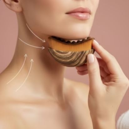 Borstel zacht omhoog richting de kaak om lymfe te activeren.