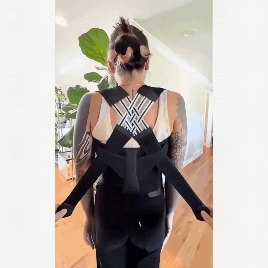 Dynamische spanning in het webbing-materiaal moedigt op een zachte manier een rechte houding aan, waardoor je houding verbetert zonder je beweging te beperken.